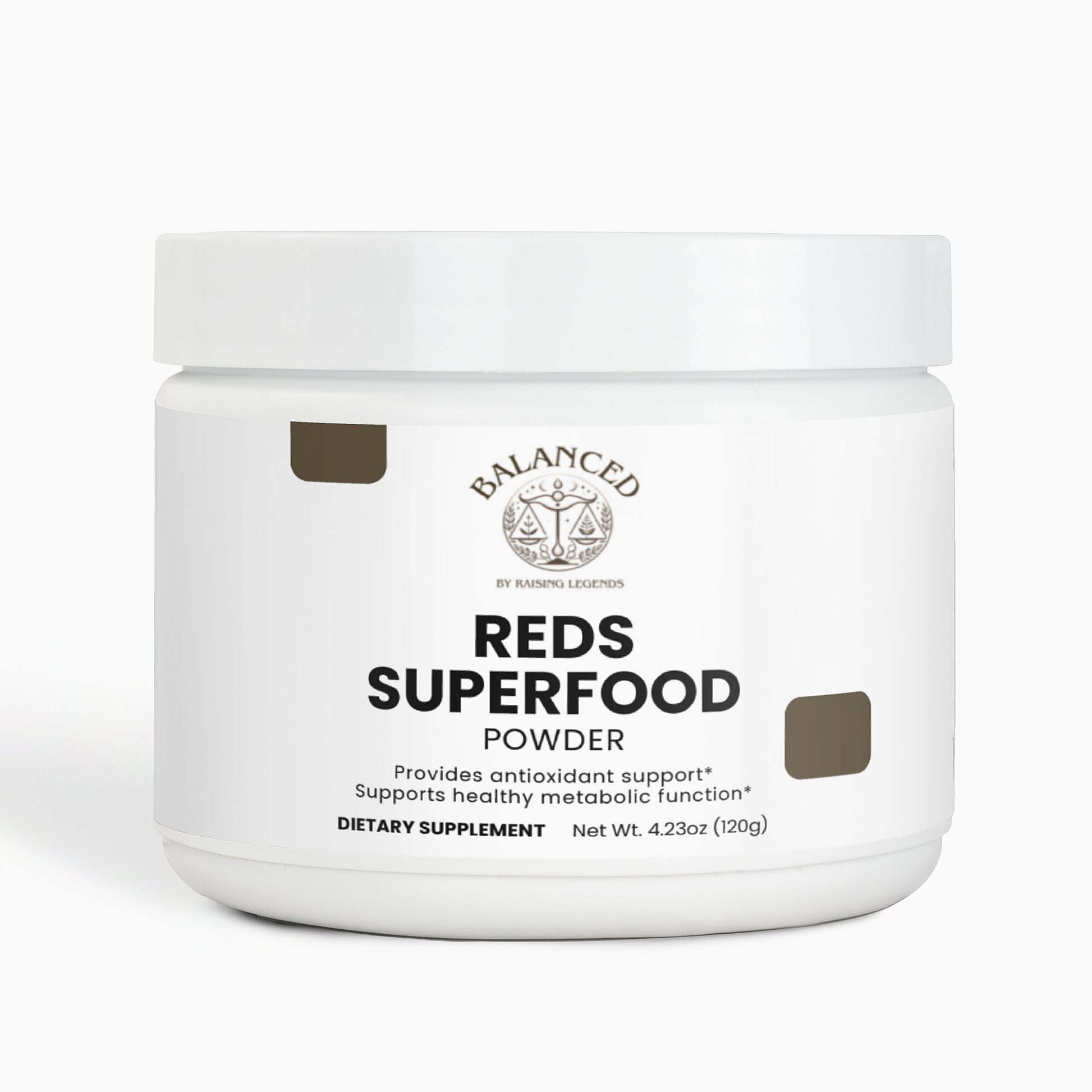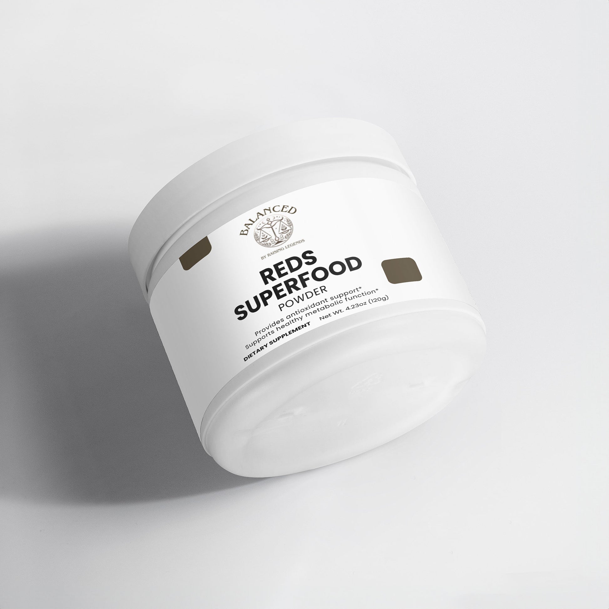 This reds powder supplement offers a rich blend of fruits, vegetables, and botanicals aimed at delivering antioxidants, fiber, and essential nutrients for overall health. The formula includes Beet Root, Strawberry Juice, Hibiscus, and a variety of other nutrient-dense ingredients like Acai Juice Powder and Cranberry Powder, designed to support optimal wellness. With a content of 120 grams, this supplement is perfect for daily consumption, providing a convenient way to boost your intake of vital nutrients and antioxidants to support health and vitality without the need for artificial additives.*